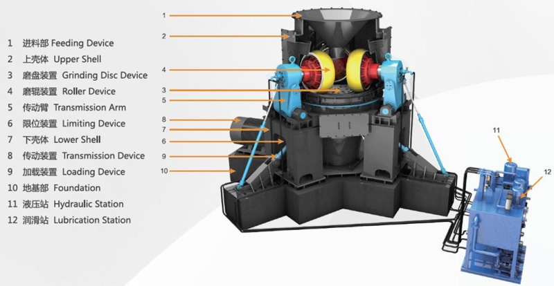 Introduction to the main components of the HLS series new vertical roller press sand machine: